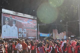 Demo yang diikuti oleh siswa, guru mulai tingkah TK sampai tingkat SMA juga para unsur masyarakat seperti RT/RW dan juga para walimurid siswa yang  mendukung agar sekolah gratis yang dicanangkan oleh Bapak Walikota bisa terus dilanjutkan.